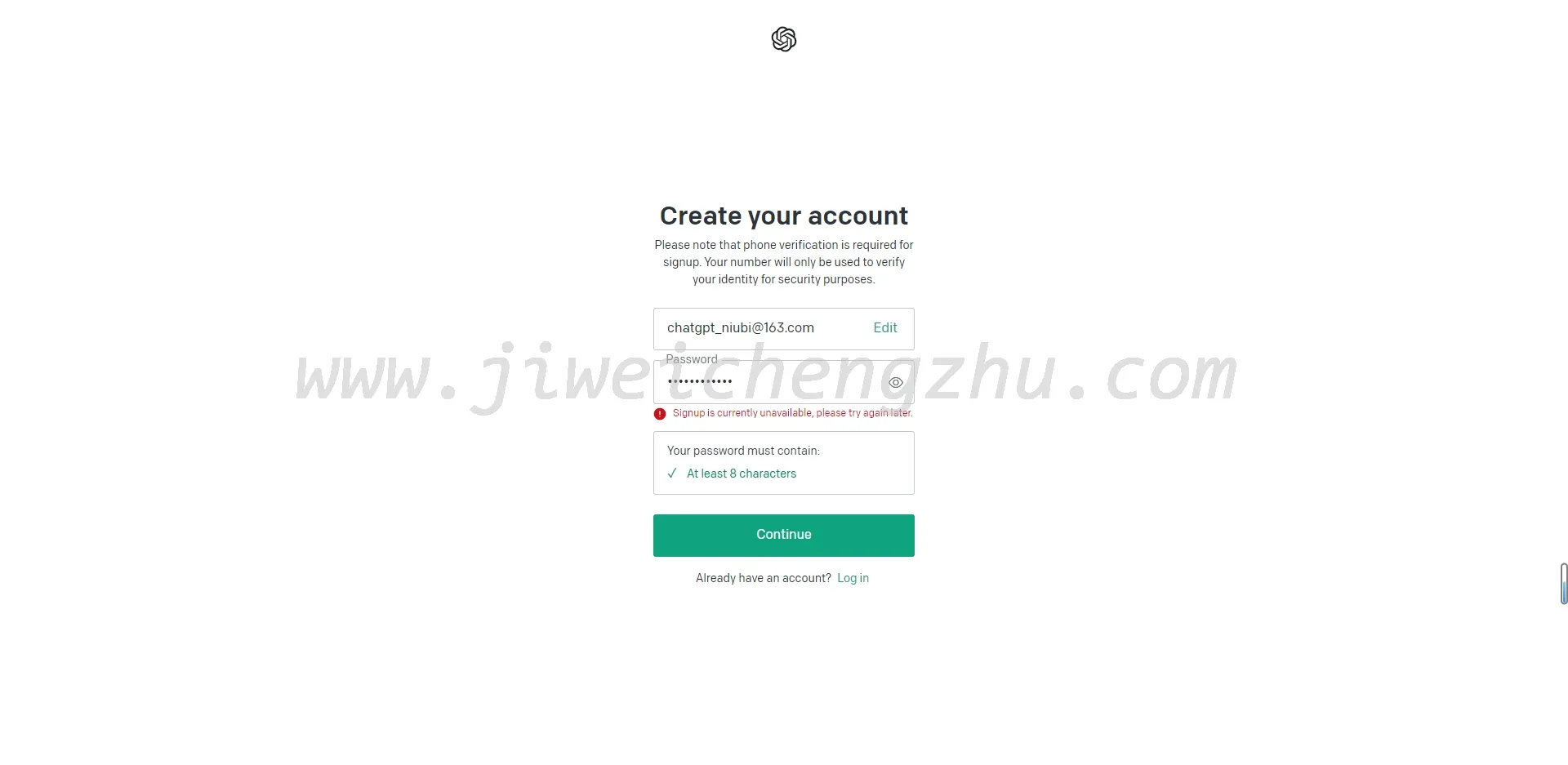 如果准备工作没做好,您将会看到注册服务不可用的提示。此时,请检查您的准备工作,以免导致 IP 被封。
