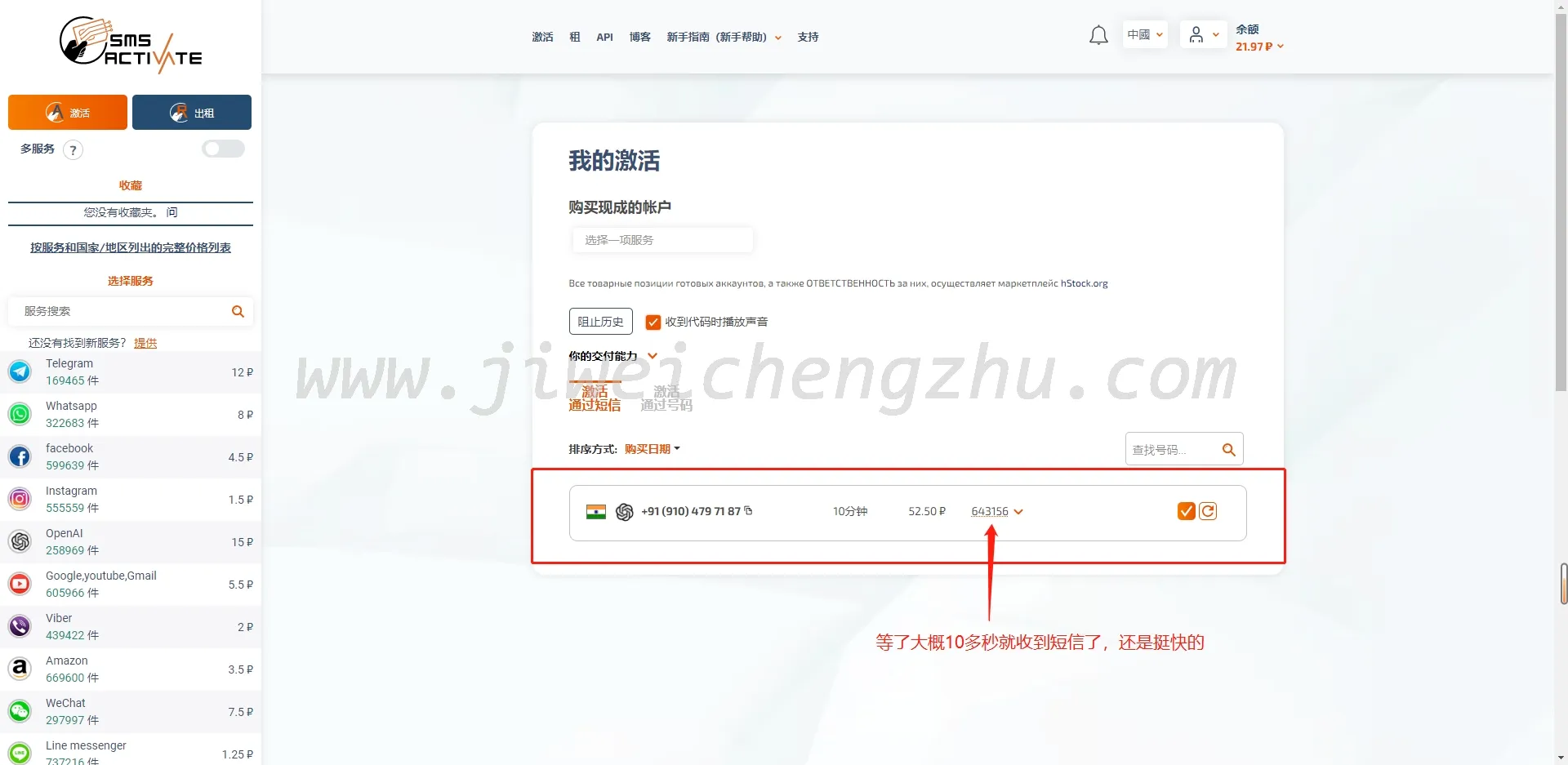 购买后,您将看到倒计时,如果在20分钟内未收到验证码,钱会退还到您的账户。