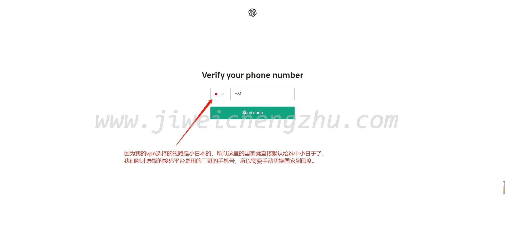 在这里,您需要选择的国家与科学上网的国家保持一致,以免功亏一篑。点击“发送验证码”按钮前,请确保获取一个境外手机号,这将用到接下来的步骤。