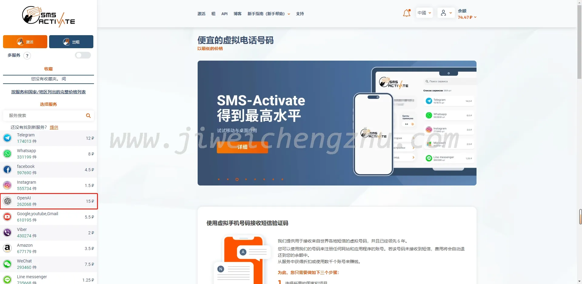 并非所有国外软件注册都限制境外手机号,有些国内手机号也能收到短信。为了注册 ChatGPT,我了解了一下接码平台,推荐一个业界公认的好用平台:SMS Activate。