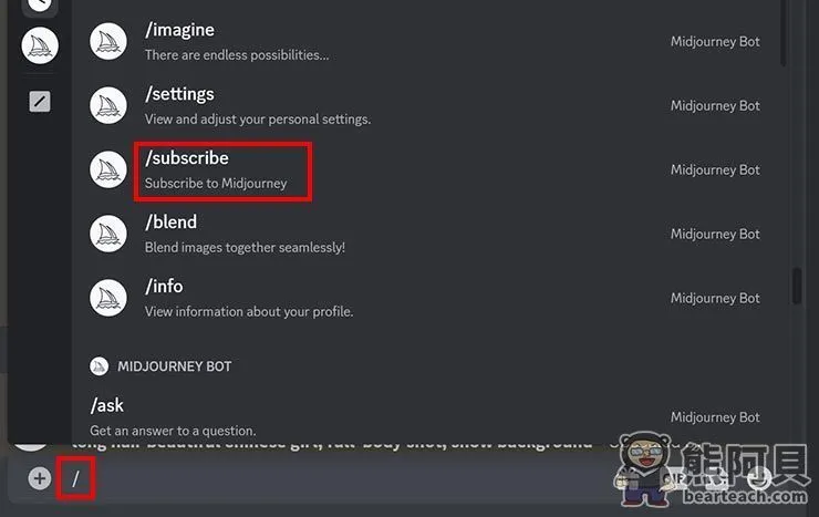 /,选择/subscribe,然后按下 Enter。