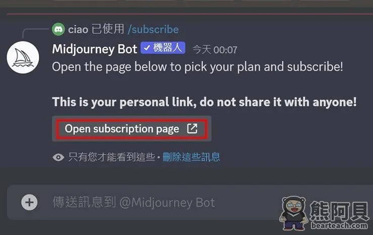 - 点击“Open subscription page”,打开订阅网页。