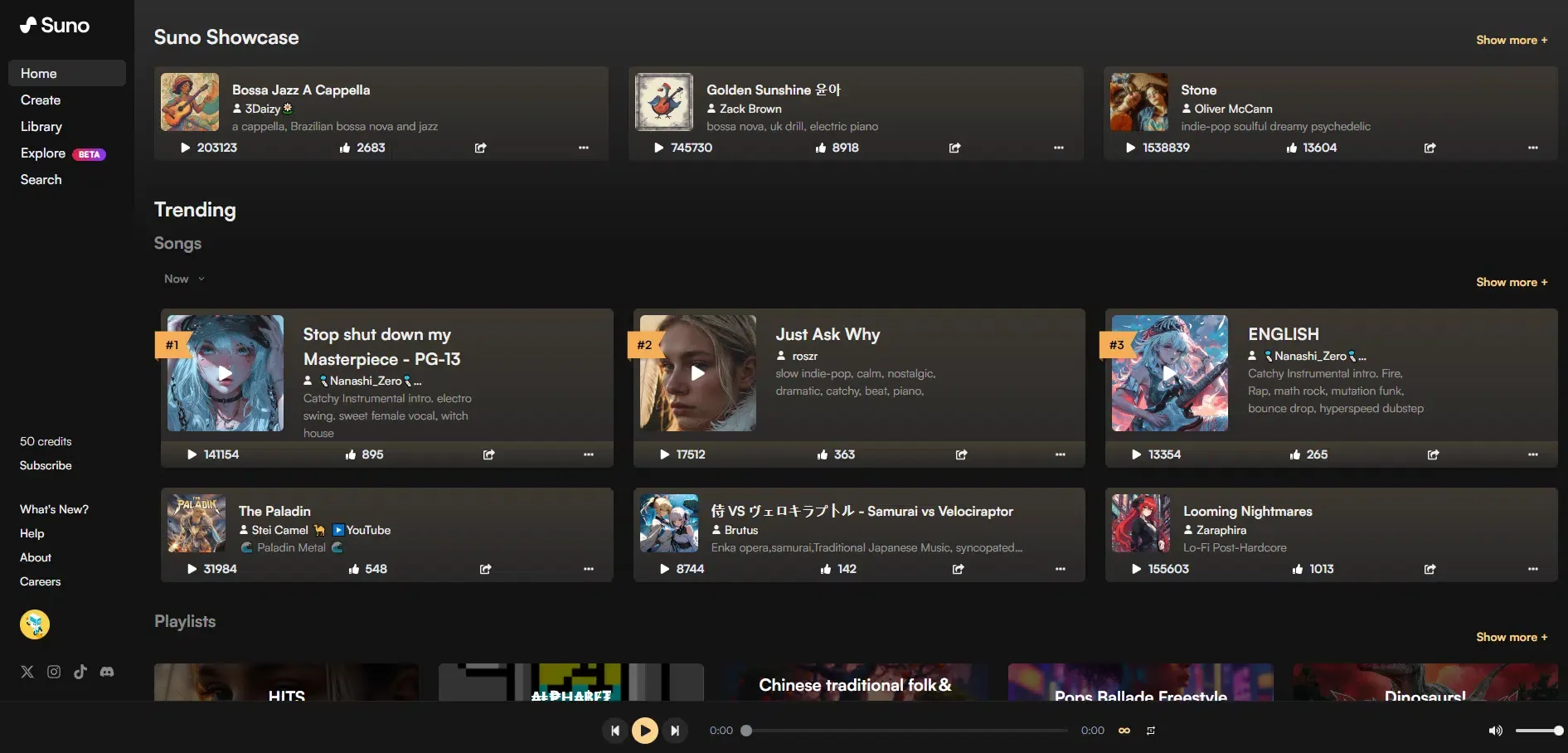 在深入了解之前,让我们欣赏几首来自 Suno 用户创作的热门歌曲,亲耳聆听一下 Suno 的强大吧。