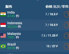 - 系统会显示多个国家的号码,选择一个价格较便宜的号码。