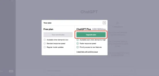 在前面的步骤中,我们已经拥有了ChatGPT账号,并办理了BinGoCard虚拟卡(余额大于20美元),接下来就可以完成升级了。