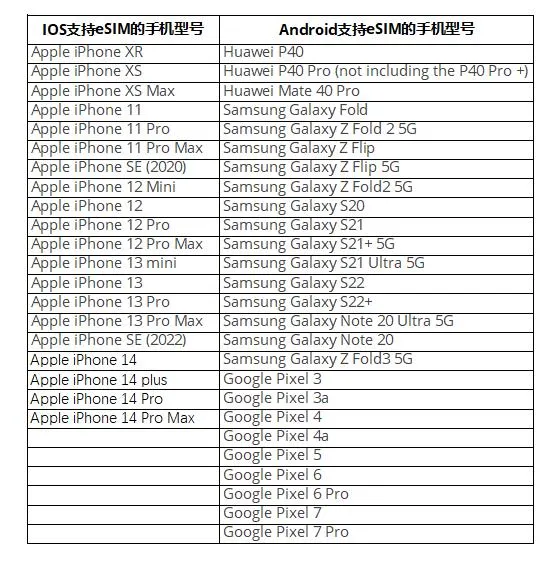要使用 eSIM 卡,你需要一部支持 eSIM 的手机。以下是一些主流手机型号(国行/港澳版除外):