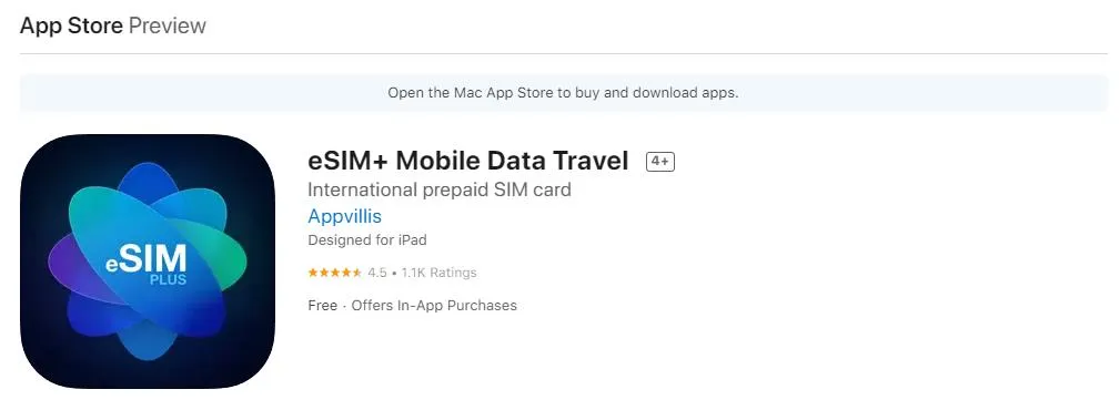 下载 app:在 Apple Store 中搜索 eSIM+ Mobile Data Travel。