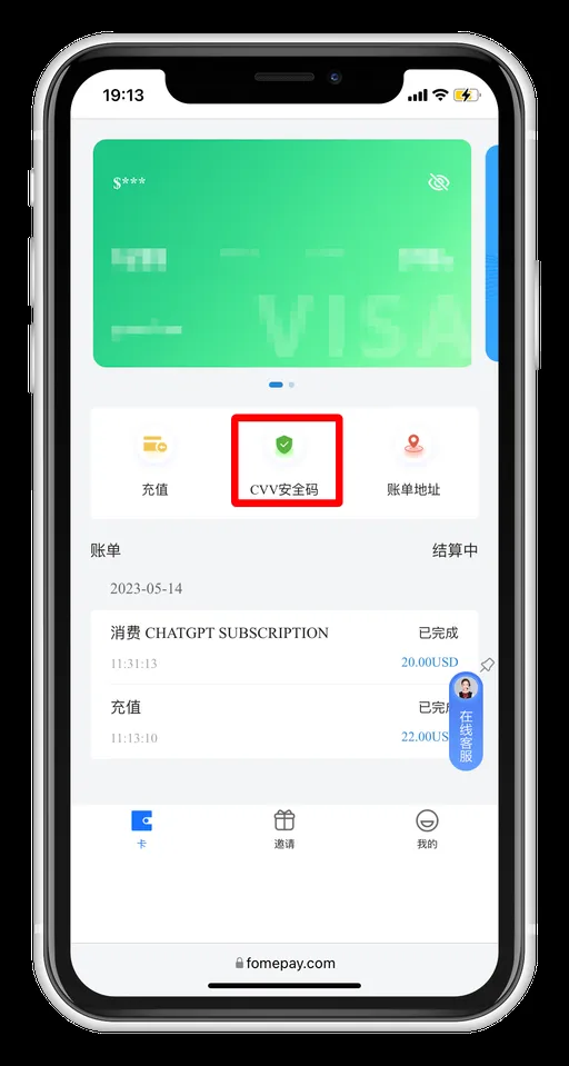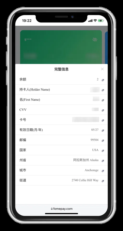 - 设置好 CVV 安全码后,再次点击 CVV 安全码,输入密码后可以获得一系列信息。