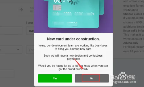 - 弹出窗口中,选择“NO”,然后输入新的信息和您的手机号。请注意,一个手机号通常只能申请一张虚拟卡。如果不想使用自己的手机号,可以通过网络电话接收验证码。