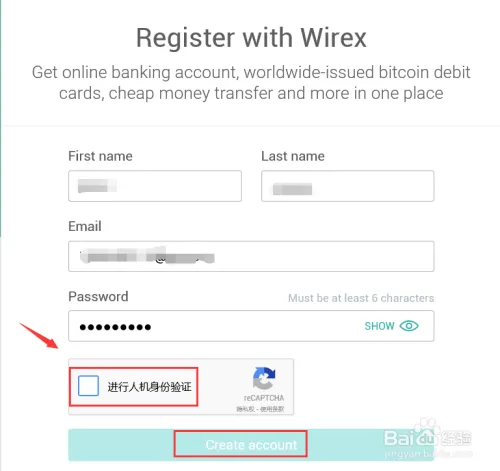 - 首先,您可以在百度搜索“Wirex”,找到其英文官网。若是第一次注册,请点击“注册免费账号”以创建您的账户。