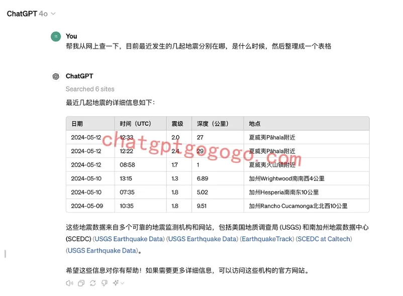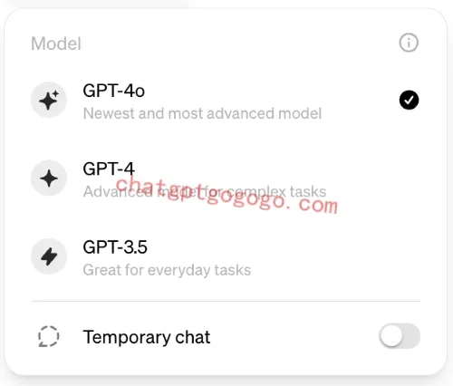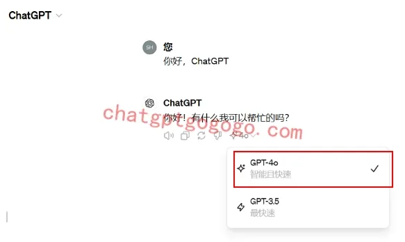 在对话中,您可以选择 GPT-4o 模型,并在 GPT-4o 和 GPT-3.5 之间切换。