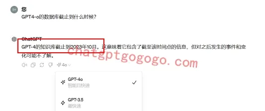 询问 GPT-4o 的知识库截止日期,您会发现它是截至 2023 年 10 月,说明您正在使用的就是 GPT-4o 模型。