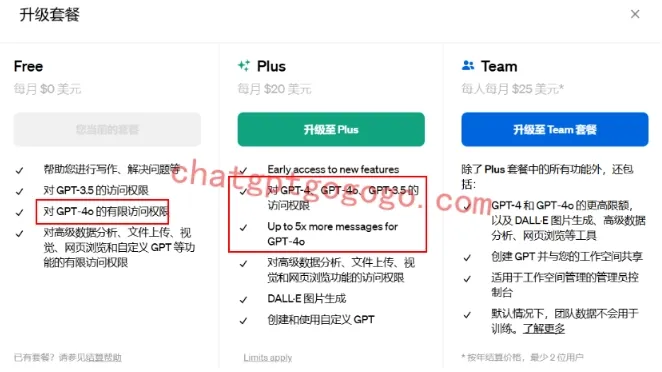 升级 ChatGPT Plus 使用 GPT-4o