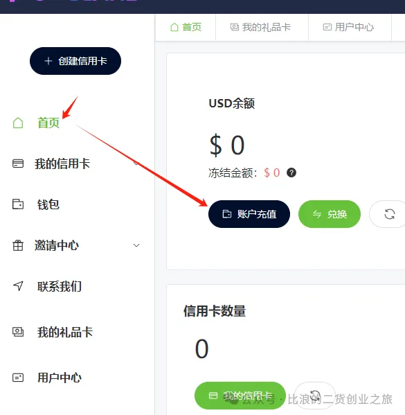 - 登录后台后,点击“我的礼品卡”,输入“比浪”领取2美金的开卡优惠券,开信用卡时可直接抵扣2美金。
