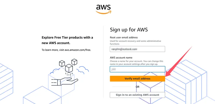 进入注册页面,填写邮箱和账号名称,然后点击“verify email address”。
