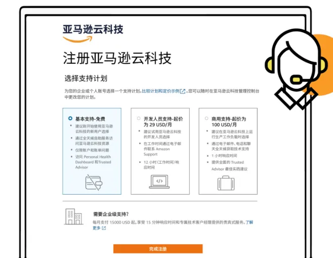 完成验证后,选择支持计划,建议选择免费计划。