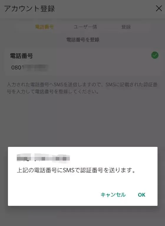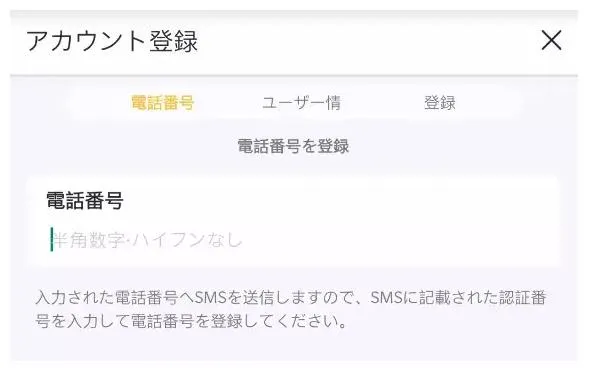 打开应用程序,点击“ログイン”按钮进入注册界面。输入日本手机号码,注意不能使用座机号码。