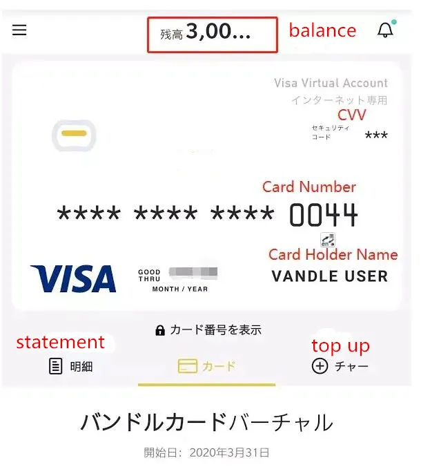 - 实体卡申请:可申请Vandle实体卡,需额外支付700日元。
