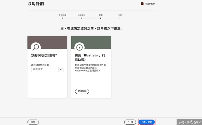 在此步骤中,请特别注意,选择左侧的 不用,感谢。