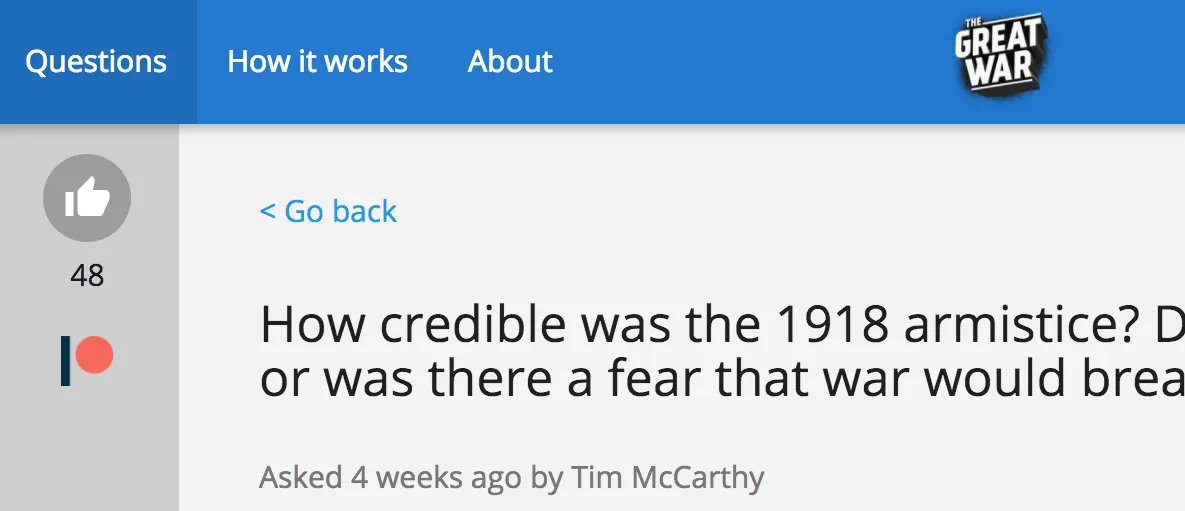 由 Yukka.nl 建立的 Great War 的问答平台 就是特殊的会员专享功能的一个典范,在这里,他们的会员可以获得更多的投票和徽章: