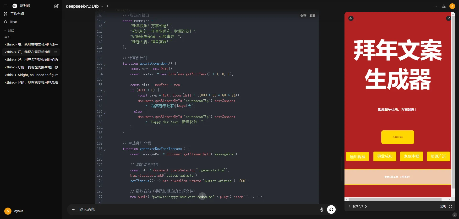 我让 AI 制作一个「新年祝福生成器」,在提示词中详细描述设计细节,以减少后续修改次数。