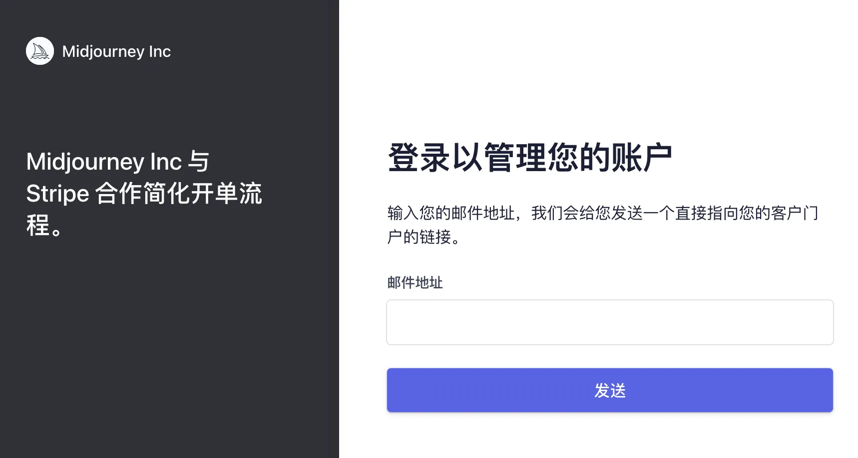 - 输入你注册 Discord 的邮箱。然后在邮箱里面接收一封 Stripe 的邮件,点击登录即可。