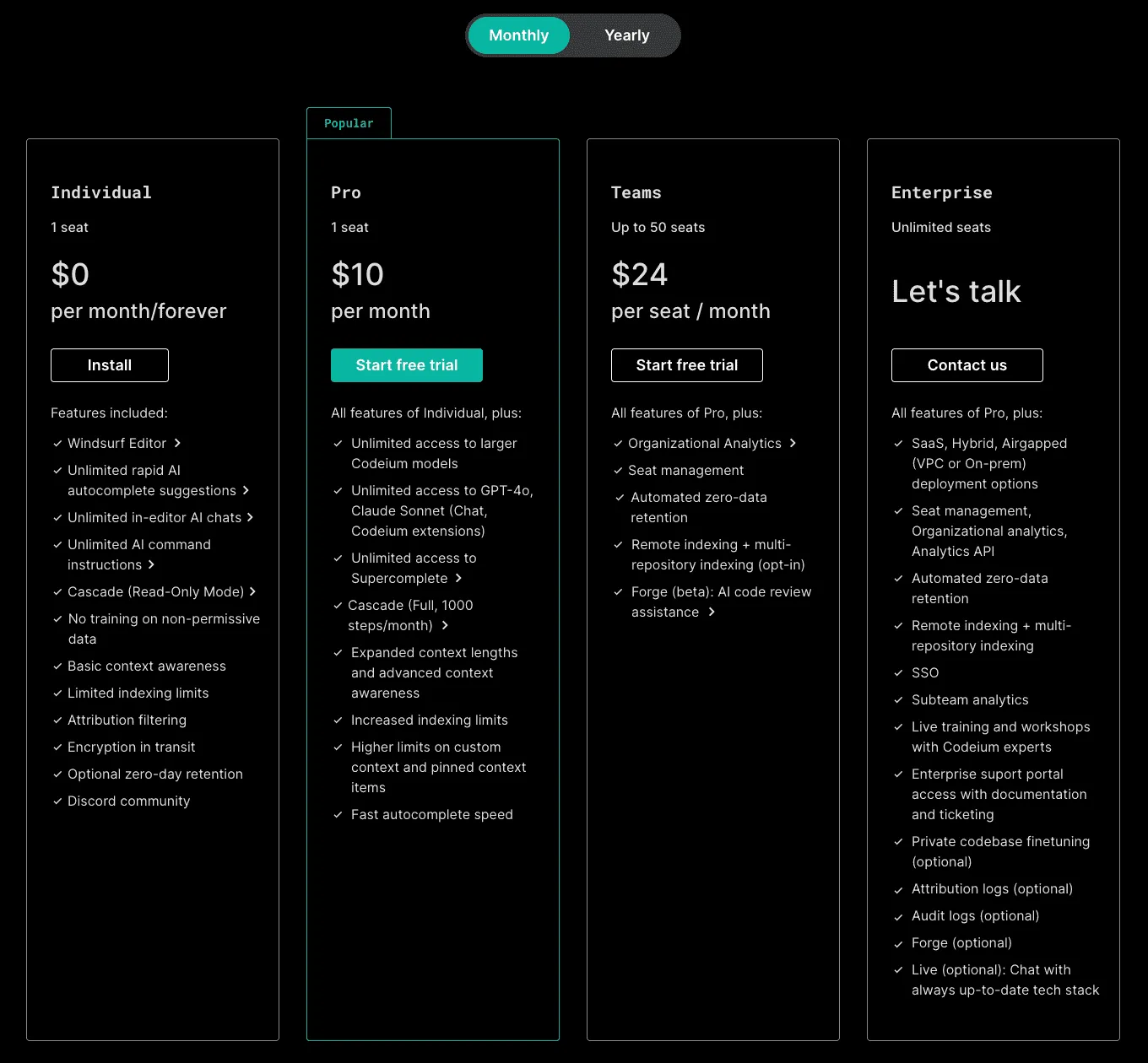 目前 Windsurf 刚刚上线,官方提供了两个月的 Pro 使用体验。