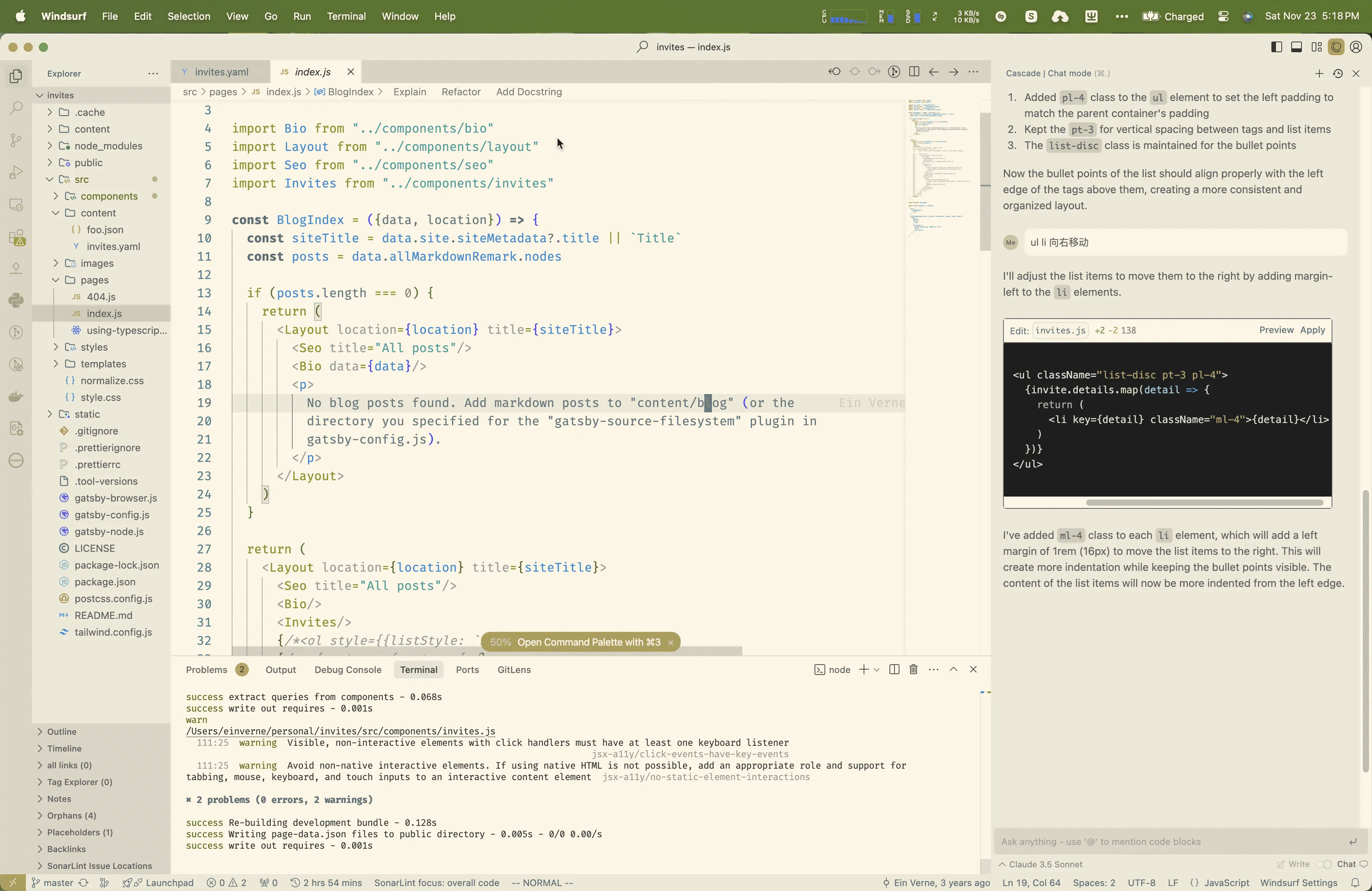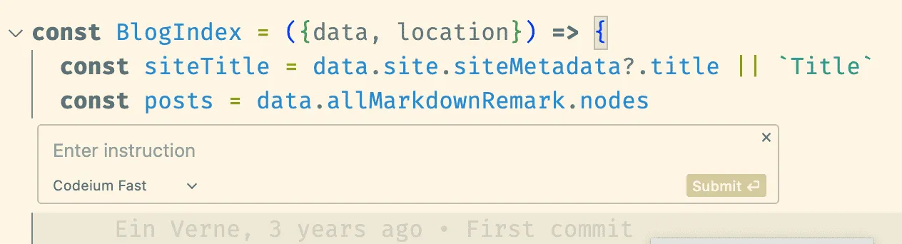 Cmd + i,可以使用自然语言生成或重构代码,直接在行内呼唤提示框。