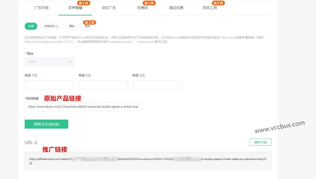 复制该产品的URL链接到联盟营销后台的文字链接处,以获取专属的推广链接。
