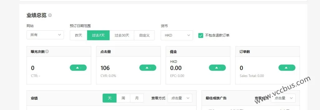 下图展示了短时间内测试投放的点击效果,共产生了106个点击,每个点击的平均消耗为0.08美元。