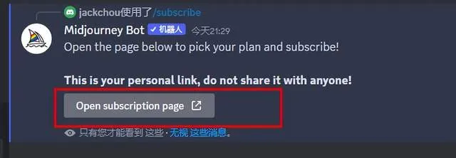 页面会弹出一个可以点击的按钮 Open subscription page,点击该按钮