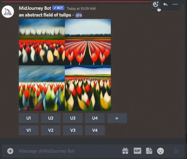 使用“U”按钮选择图像并添加细节,使用“V”按钮生成更多类似的图片。
