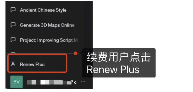 1. 登录 ChatGPT,点击左下角的 Renew Plus