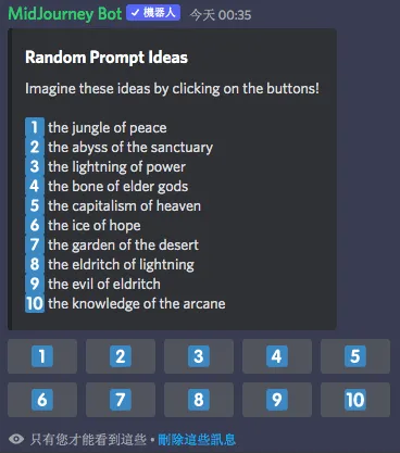 如果你不知道要画什么,这个指令可以给你一些灵感,随机生成一些关键词供你选择。