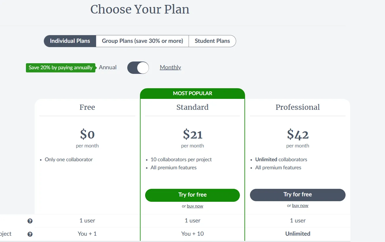 Overleaf分为免费版、标准版和专业版三个不同的订阅计划,它们的区别在于合作者的数量和在线编译时长。
