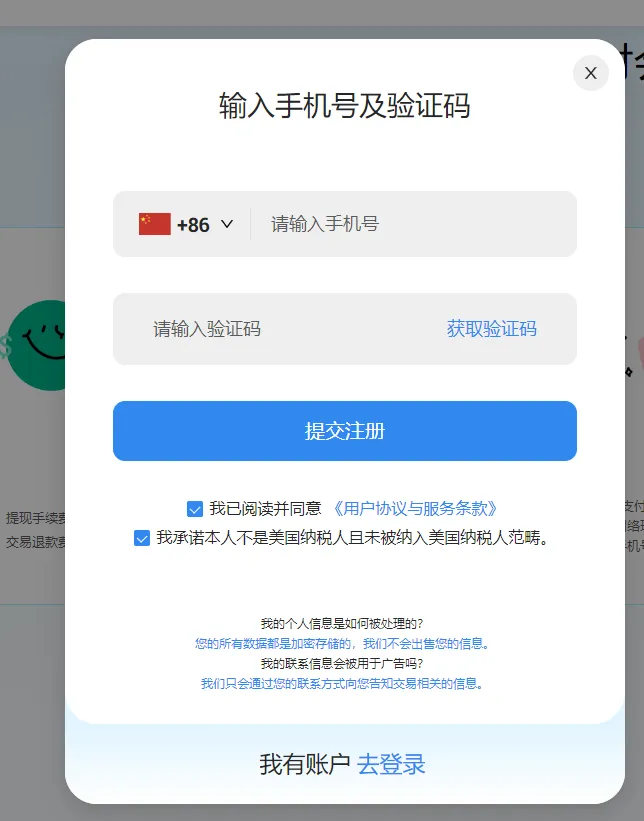 - 输入你的手机号码接收验证码(使用邀请码ACCPAY可以在开卡时优惠1美元!)。