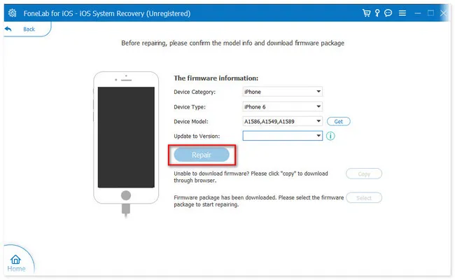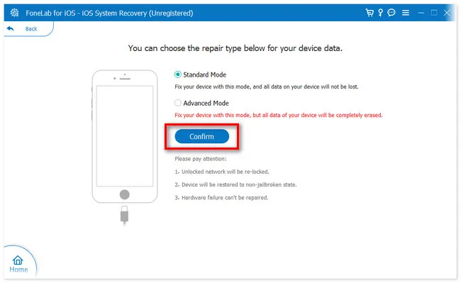 - 按照屏幕上的说明将 iPhone 置于恢复模式,点击 修复 开始修复。