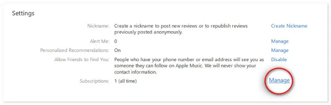 向下滚动到 订阅,点击 管理,然后选择 取消订阅。