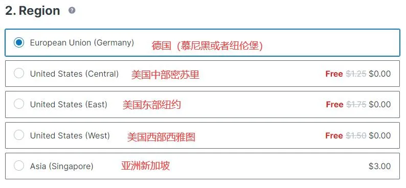根据需求选择机房位置。对国内用户而言,美国西部(西雅图)通常速度最快,也可以选择欧洲或亚洲新加坡机房。