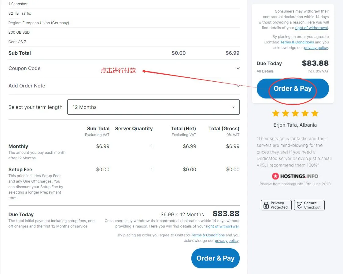 以下是详细的 Contabo VPS 购买步骤,每一步都配有图文说明,供您参考。