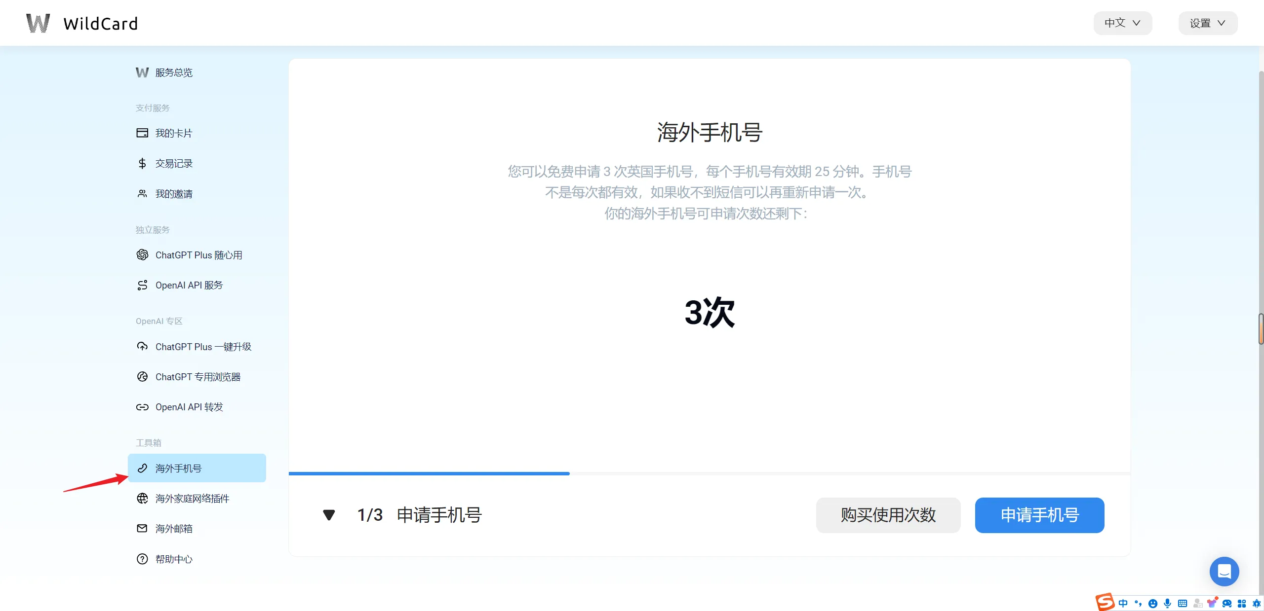 另外,开完卡之后,会赠送三个海外手机号,可以用来注册ChatGPT账号等海外网站。还有一些海外邮箱、代理、OpenAI API等服务,大家自行探索哦。