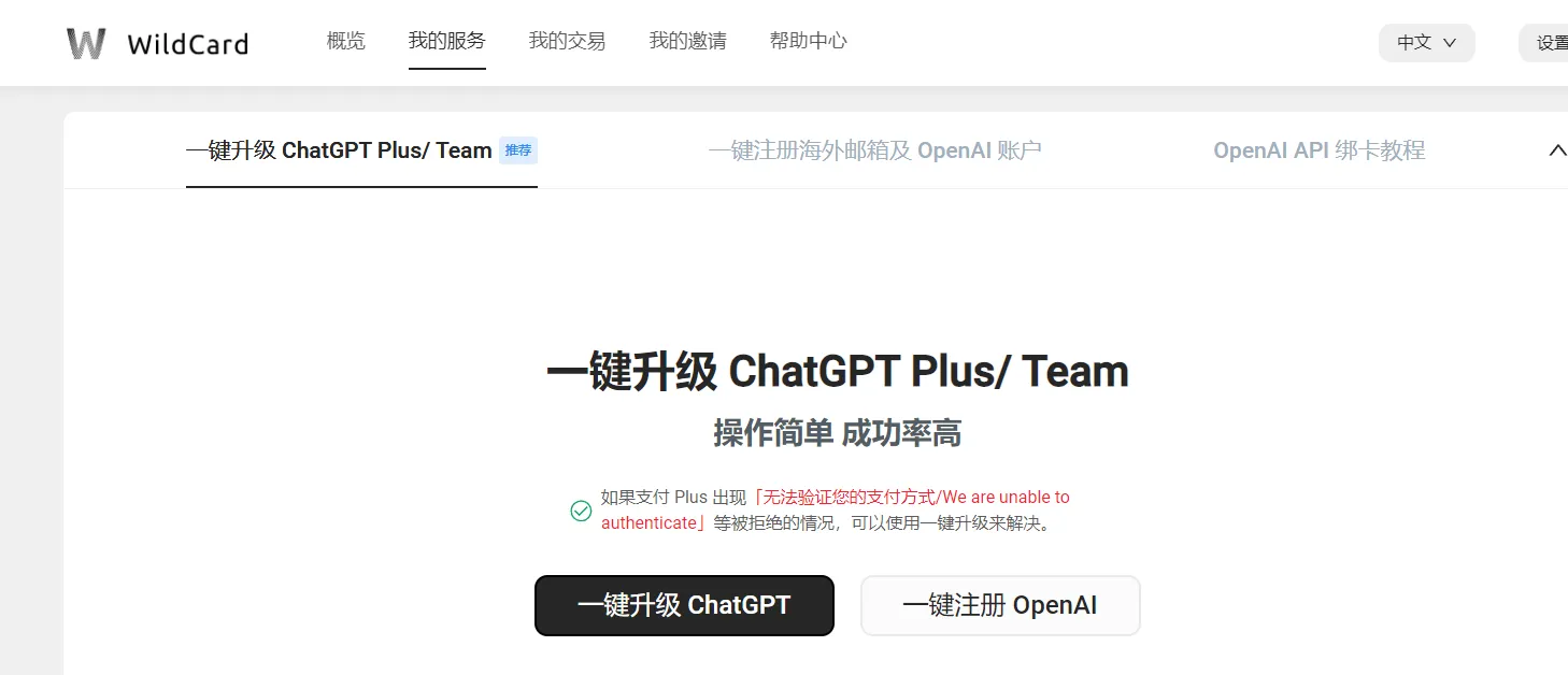 推荐使用 野卡(正规平台,支持支付宝充值),操作便捷,内置一键注册ChatGPT和一键升级GPT Plus的功能。