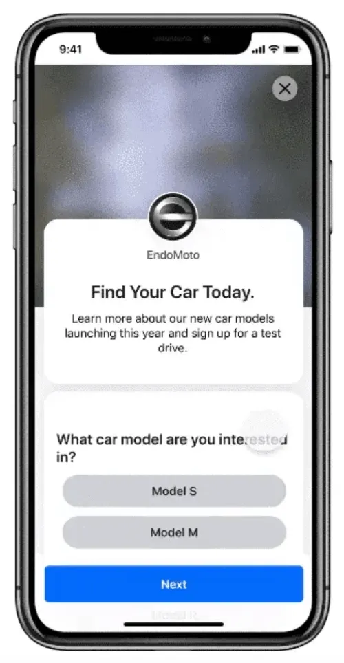 即时体验广告是一种全屏格式广告,允许用户访问更多即时内容。