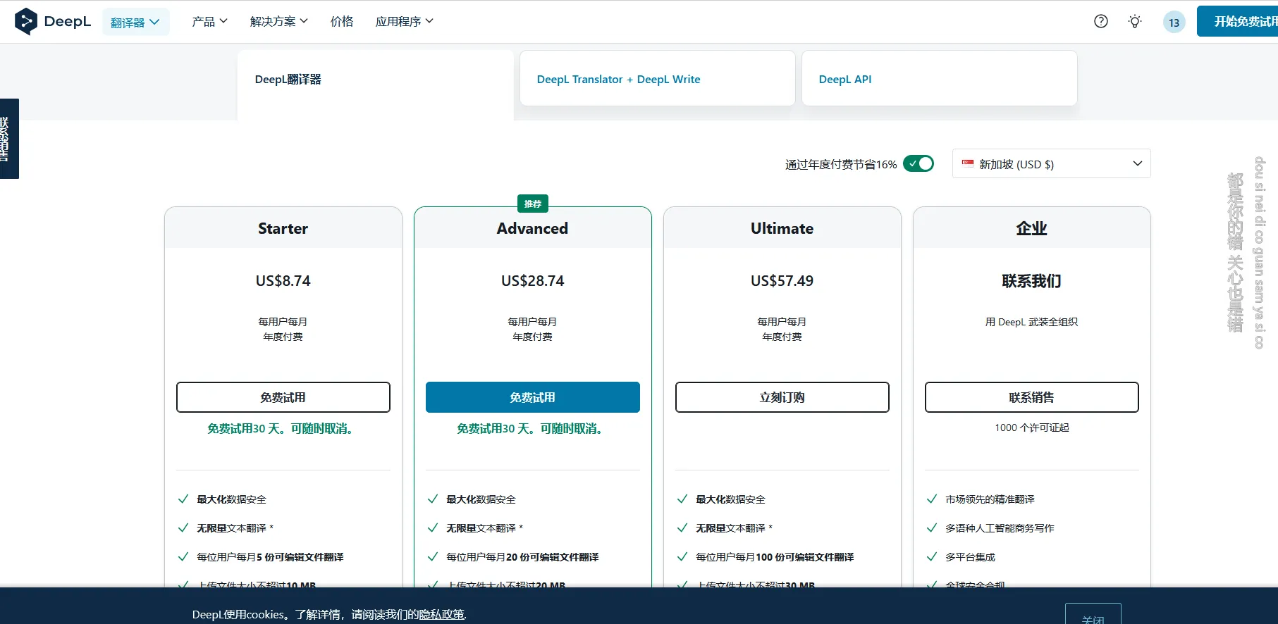 接着,访问 DeepL 官网,注册并登录账号(可以使用自己的邮箱)。登录后,选择需要订阅的服务,包括 DeepL 翻译器、DeepL Pro 和 DeepL API。