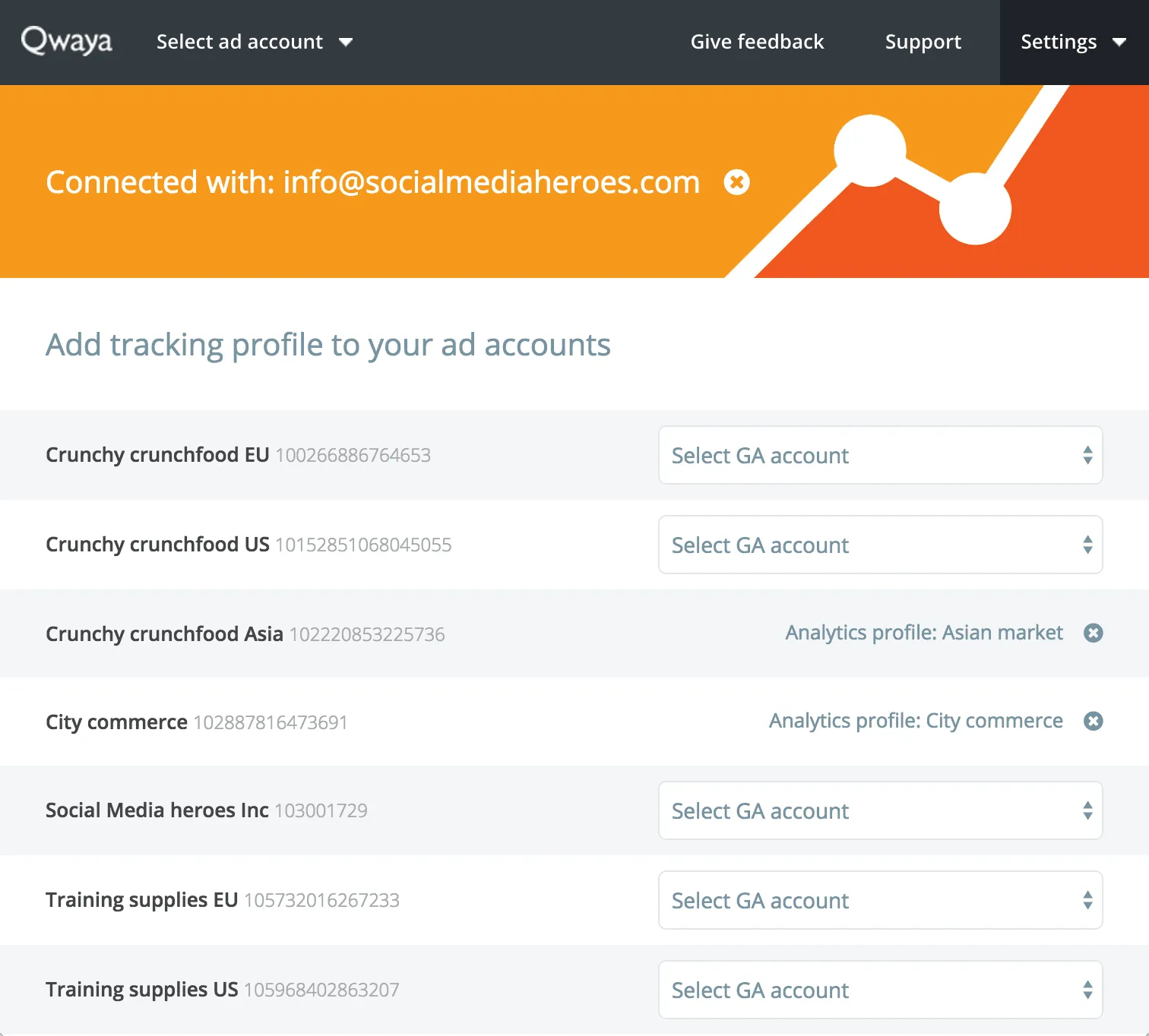 - Qwaya:可以轻松将GA账户汇整至FB广告账户,让用户在调整广告或汇整报表时,能够同时查看GA的数据分析。