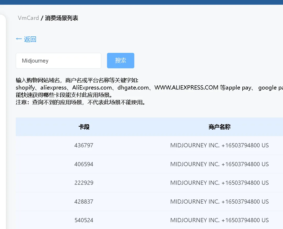 - 查看卡信息:开卡后可在卡列表中查看卡信息,后续绑定Midjourney时会用到。