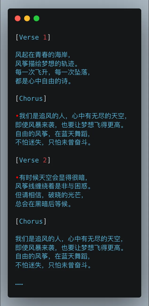 在 Suno 上的歌词,除了用现成的诗、词、歌、赋之外,还可以自己独立创作。