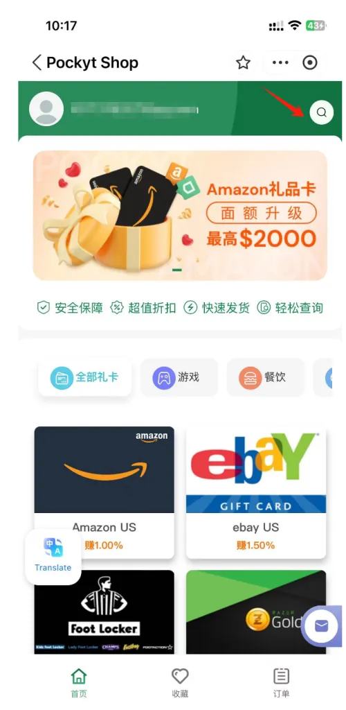 切换位置,改为纽约,点击大牌礼卡