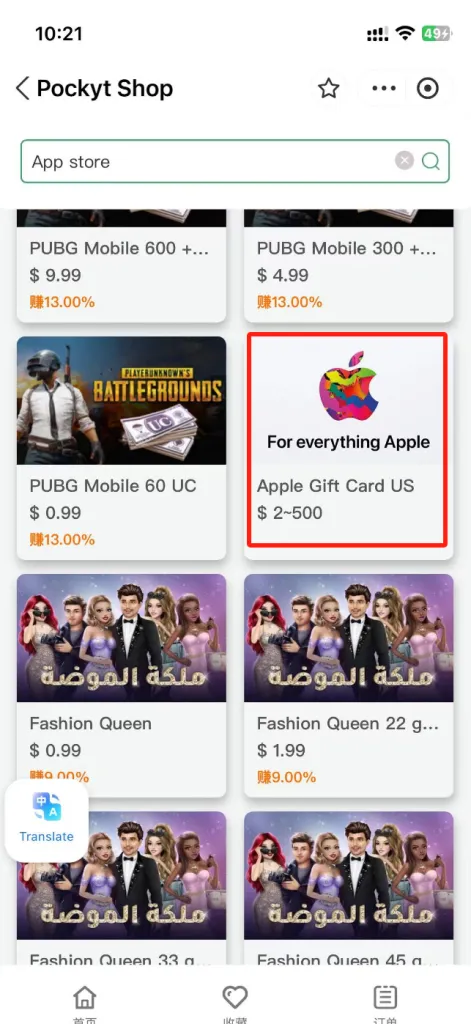 2. 购买苹果礼品卡