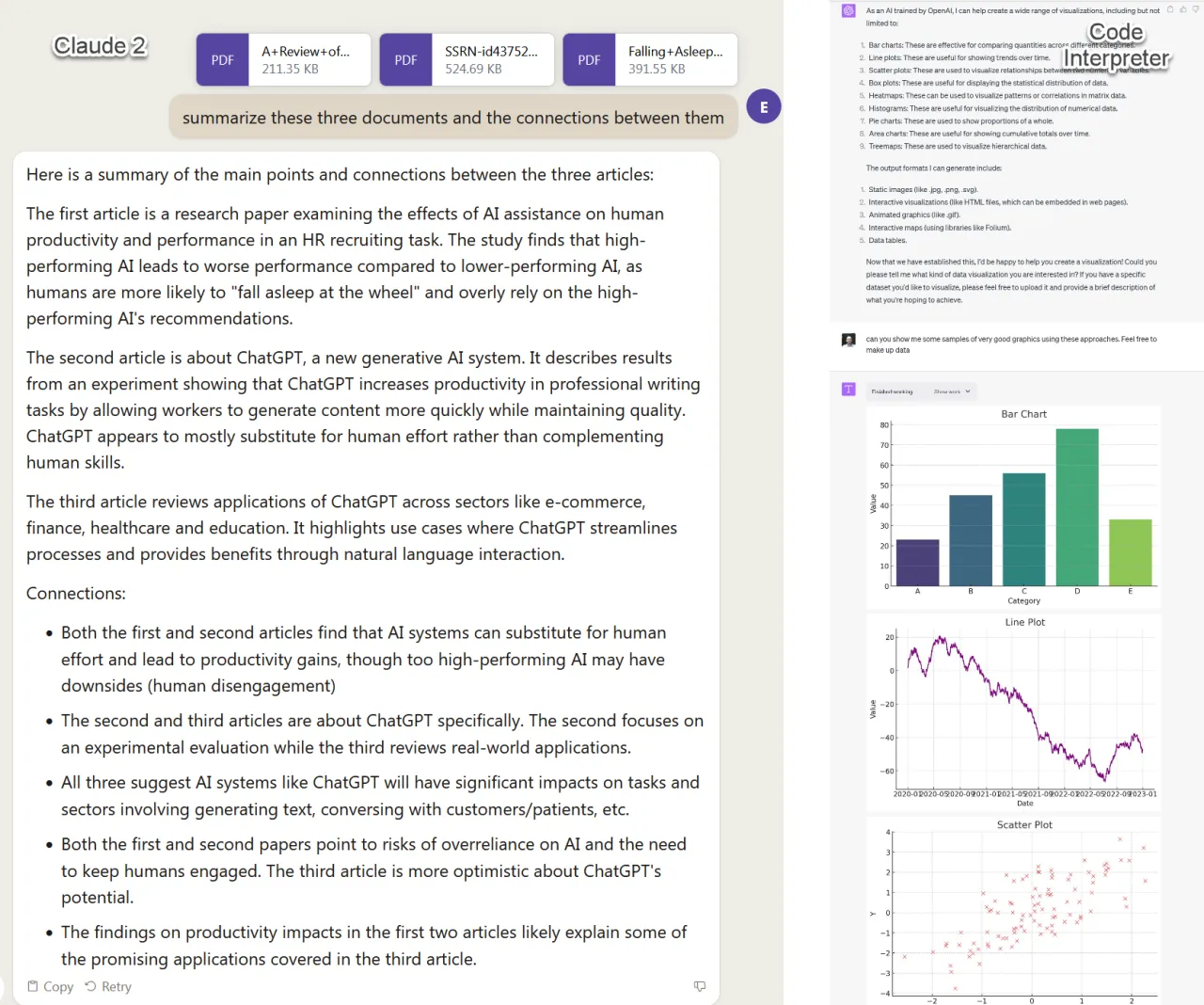 在文本处理方面,Claude 2 表现出色,能够处理复杂的学术文章并提供摘要。